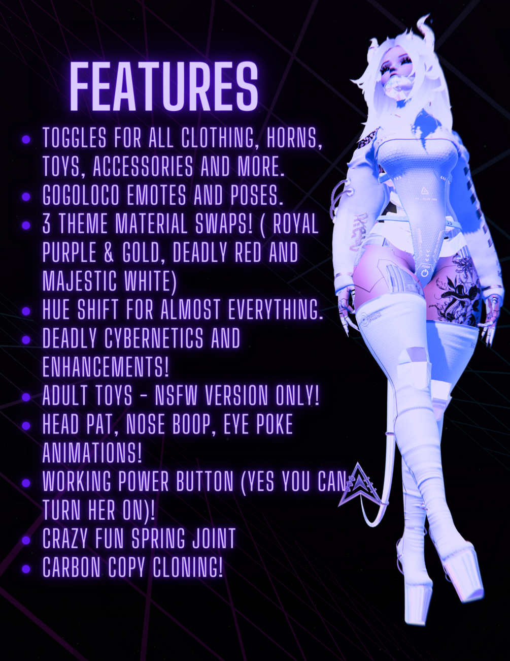 • 3 Theme Material Swaps! ( Royal Purple & Gold, Deadly Red and Majestic White)